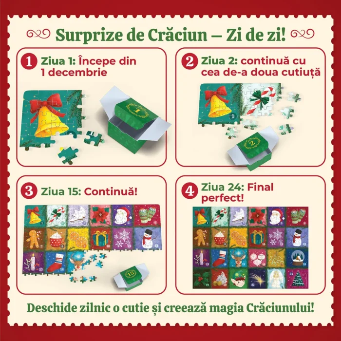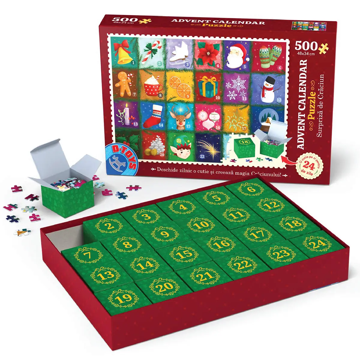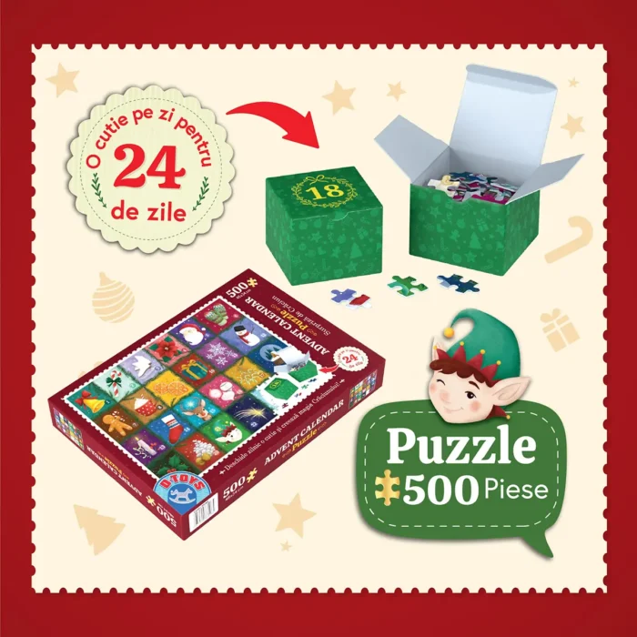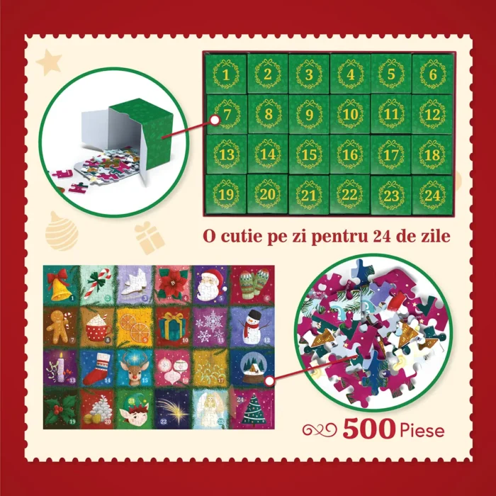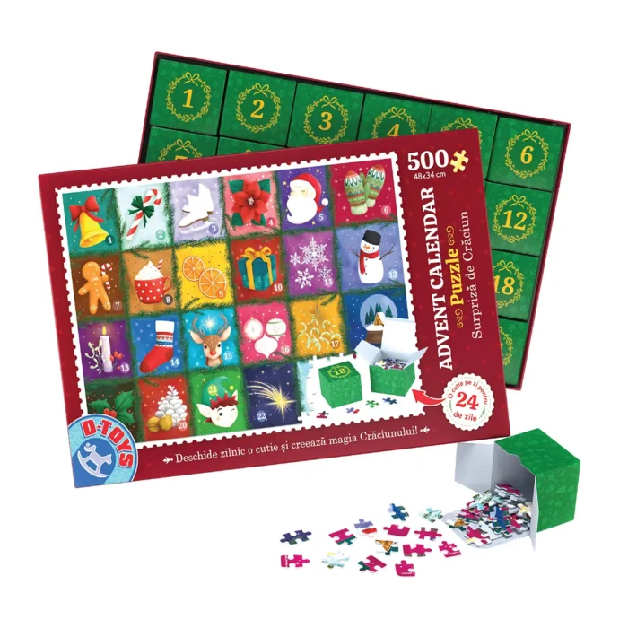 Descoperă magia Crăciunului pas cu pas! Completează Advent Calendar Puzzle – 500 de piese timp de 24 de zile și bucură-te în tihnă de sărbătorile de iarnă.