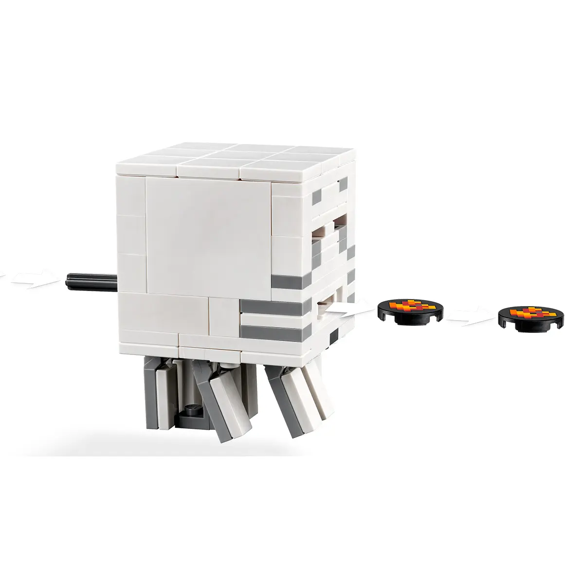 • Scenă de luptă și figuri de acțiune Minecraft® –Include o figurină războinic orc, un ghast Minecraft care lansează discuri din gură, o figurină hoglin care lovește cu capul și 2 cuburi de magmă