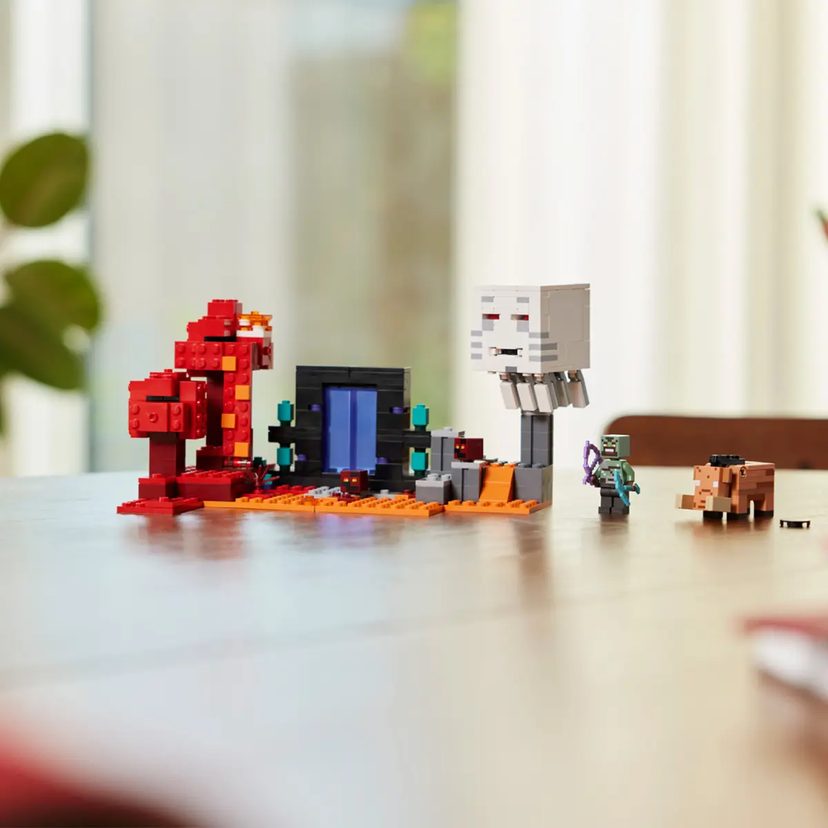 • Jucărie LEGO® Minecraft® cu portal Nether – Acest set de aventuri Minecraft pentru gameri, copii, băieți și fete de 8+ ani include scene de acțiune construibile și personaje Minecraft emblematice