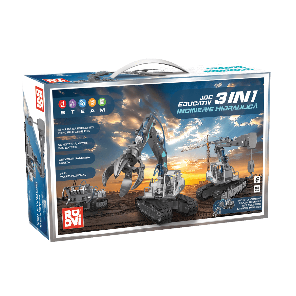 Excavatorul Hidraulic introduce copiii în fascinanta lume a ingineriei hidraulice! Compus din 130 de piese, acest model DIY educativ le oferă micilor constructori oportunitatea de a înțelege și de a aplica principiile fizicii, folosind doar apă pentru a acționa brațul robotului.