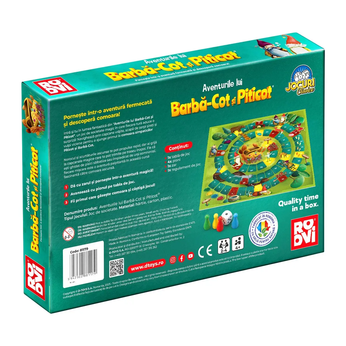 Pentru o experiență de joacă și distracție fabuloasă, conectare cu copiii sau pentru a face un cadou deosebit unui copil curios și năzdrăvan, jocul de societate Aventurile lui Barbă-Cot și Piticot este alegerea perfectă.