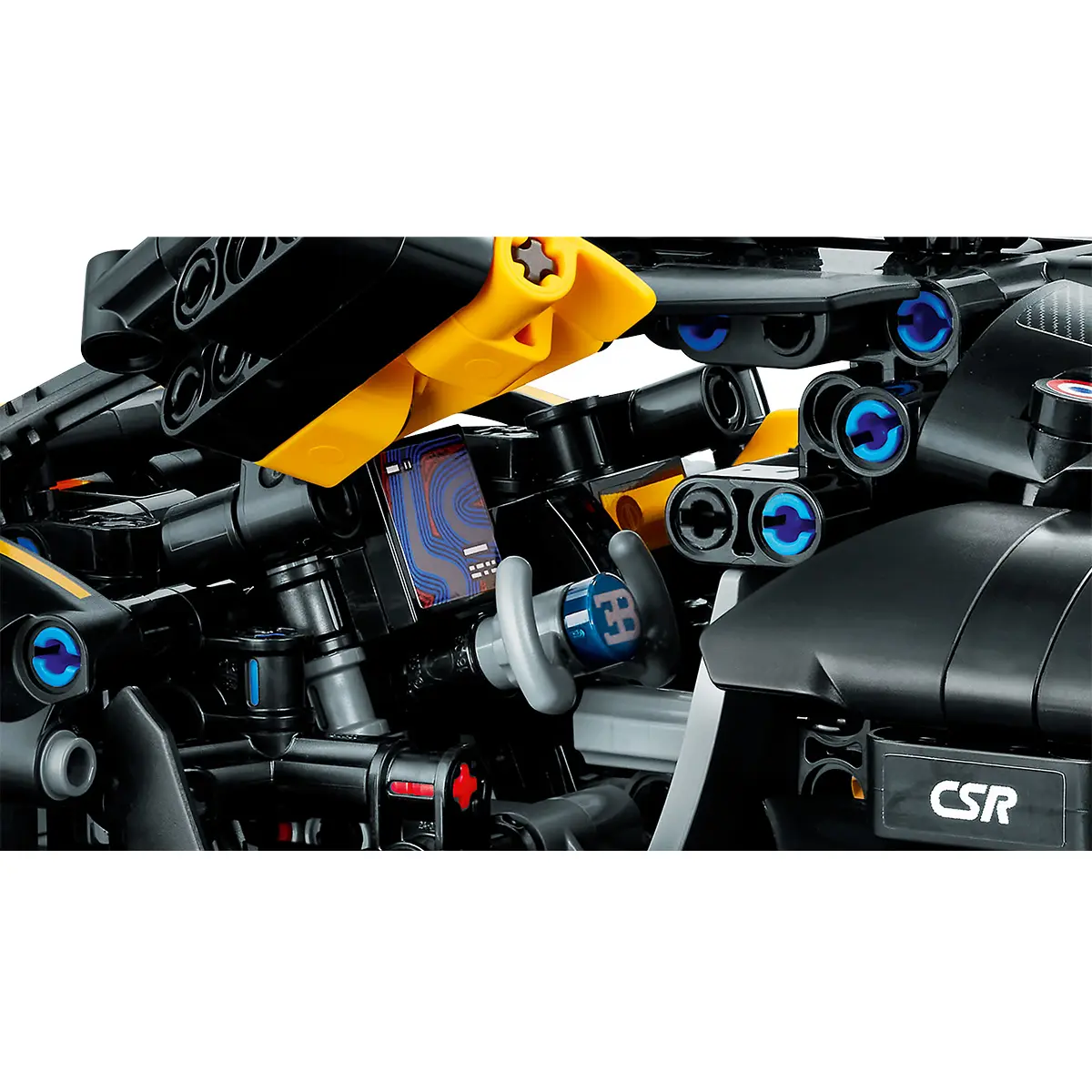 Se vor bucura de un proiect antrenant, în care trebuie să creeze toate detaliile fidele realității, între care un motor W16 funcțional, direcția și ușile foarfecă. Aspectul spectaculos al mașinii impresionează, cu o schemă de culori în galben și negru și stickere autentice. După construirea și explorarea mașinii, copiii își pot expune cu mândrie modelul de colecție.
