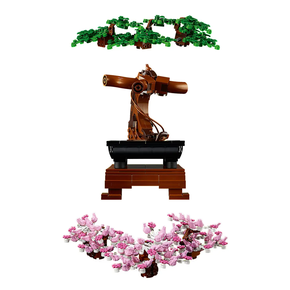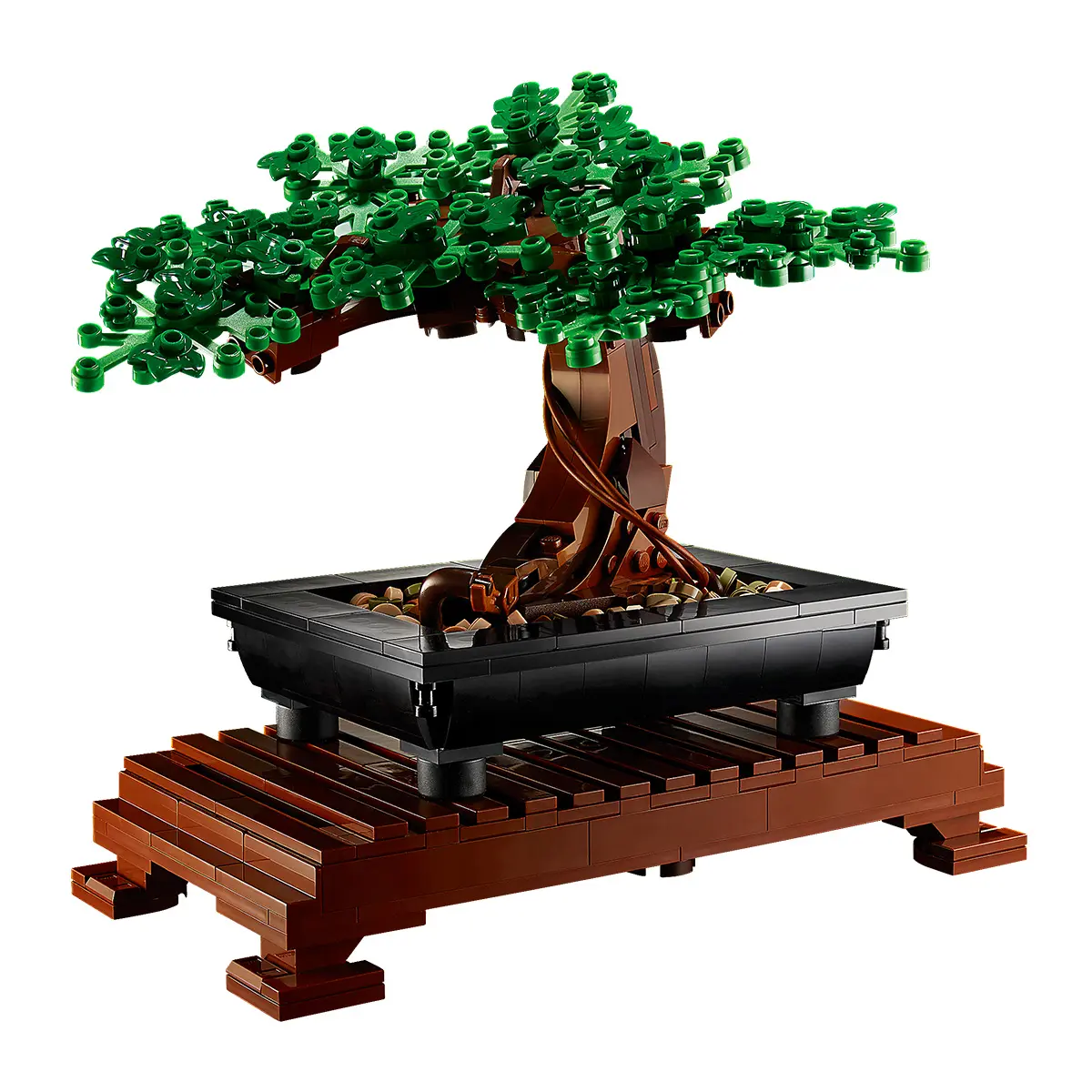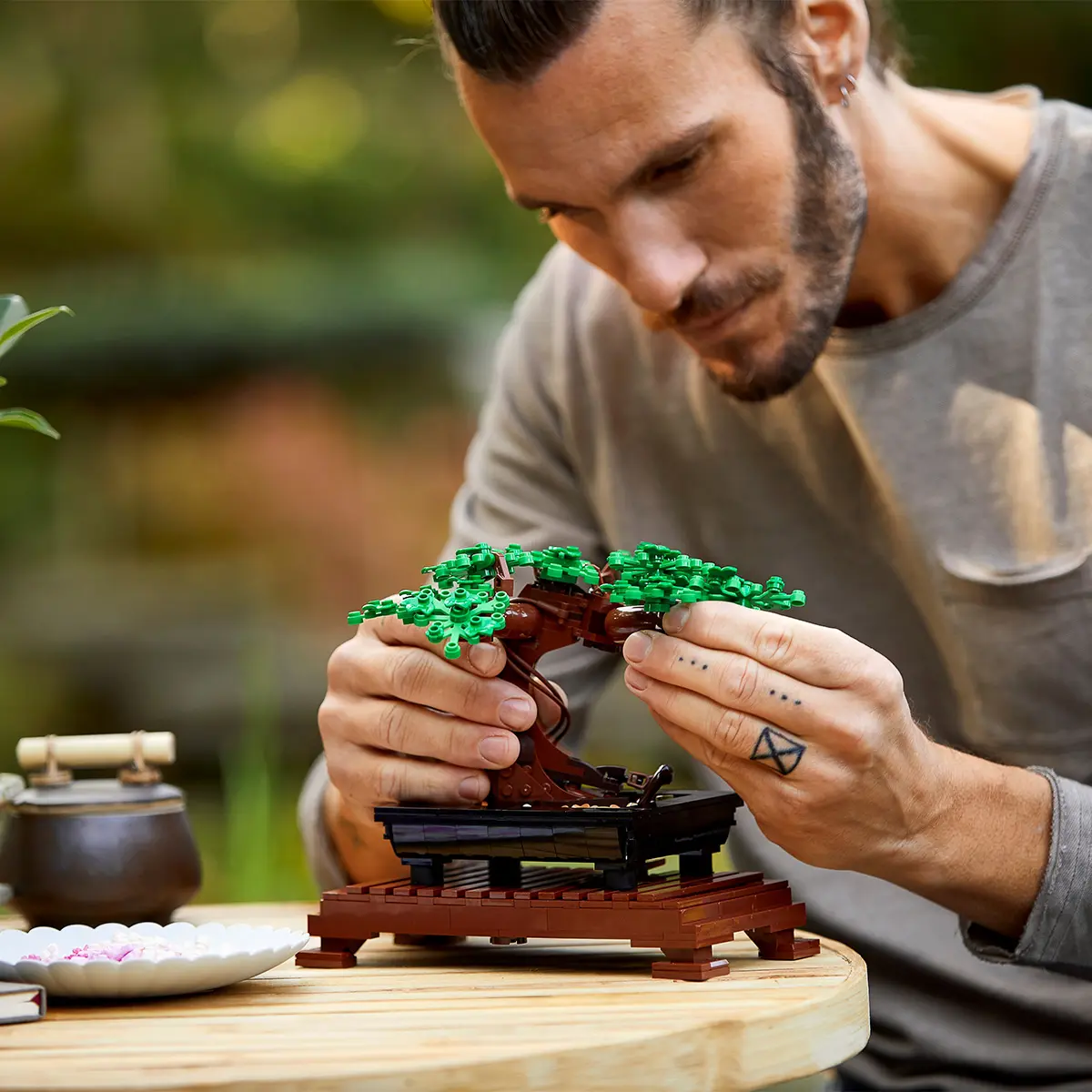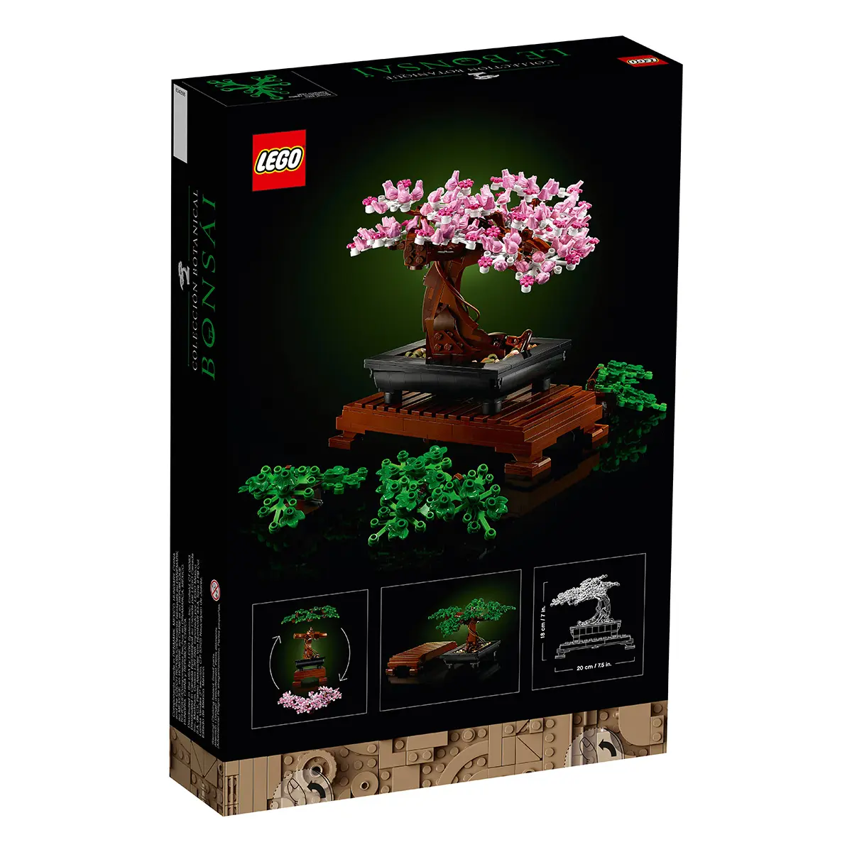 Modelul LEGO Bonsai vine cu un ghiveci dreptunghiular și un stativ LEGO din șipci cu aspect de lemn, creând o frumoasă piesă de expunere care poate sta la loc de cinste în orice locuință sau birou. Fie că este un cadou de zi de naștere pentru o persoană dragă sau un dar pentru tine, acest set va bucura cu siguranță imaginația cu frumusețea sa. Parte a Colecției botanice LEGO pentru adulți, include elemente de frunze realizate dintr-un material plastic pe bază de plante, folosind trestie de zahăr din surse regenerabile.