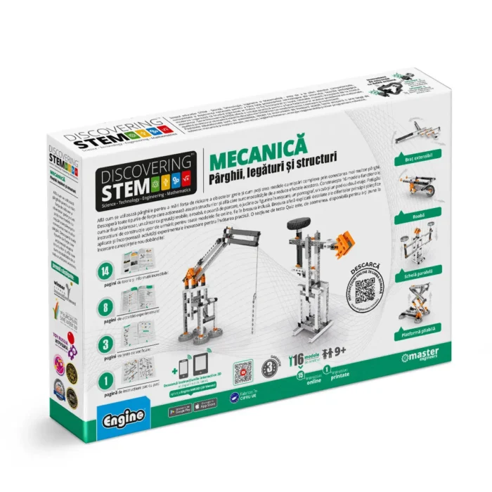 Curios să afli ce sunt pârghiile și care este rolul lor în viața de zi cu zi? Experimentează și creează 16 modele cu mișcare complexă și descoperă principii științifice care ne fac viața mai ușoară.
