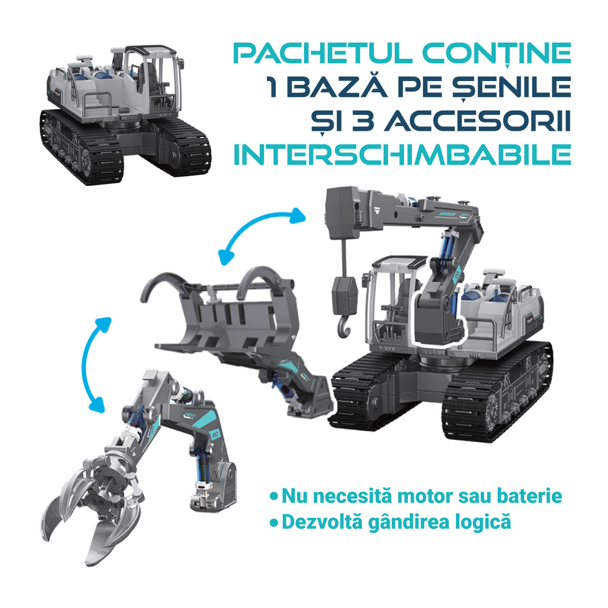 • Asamblarea pieselor și controlul brațelor hidraulice antrenează motricitatea fină și coordonarea mână–ochi.