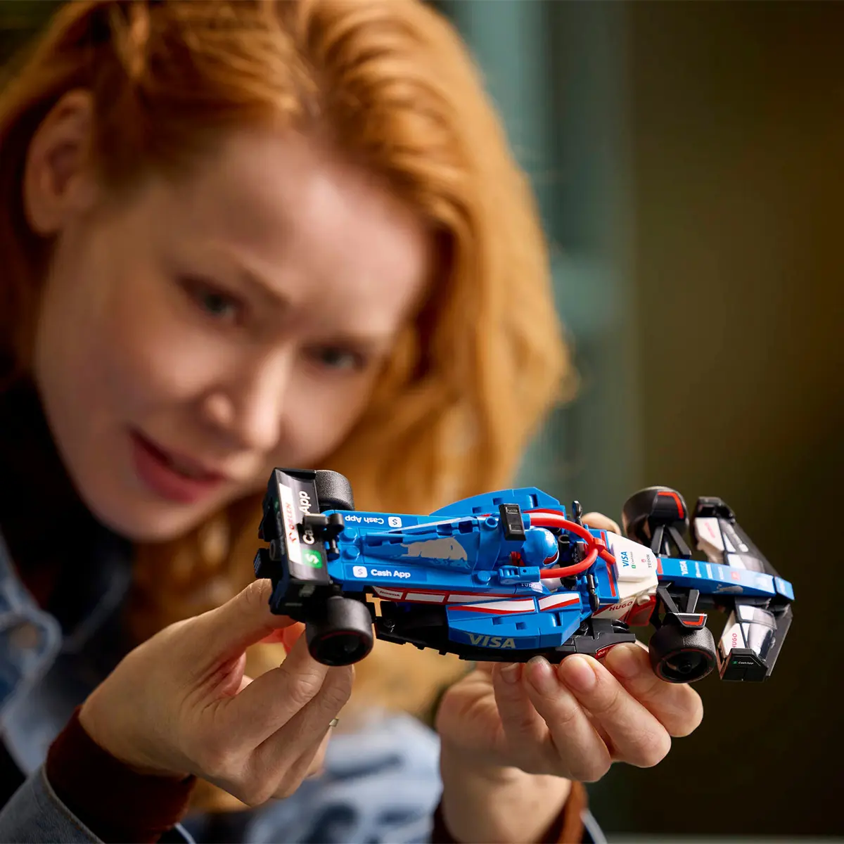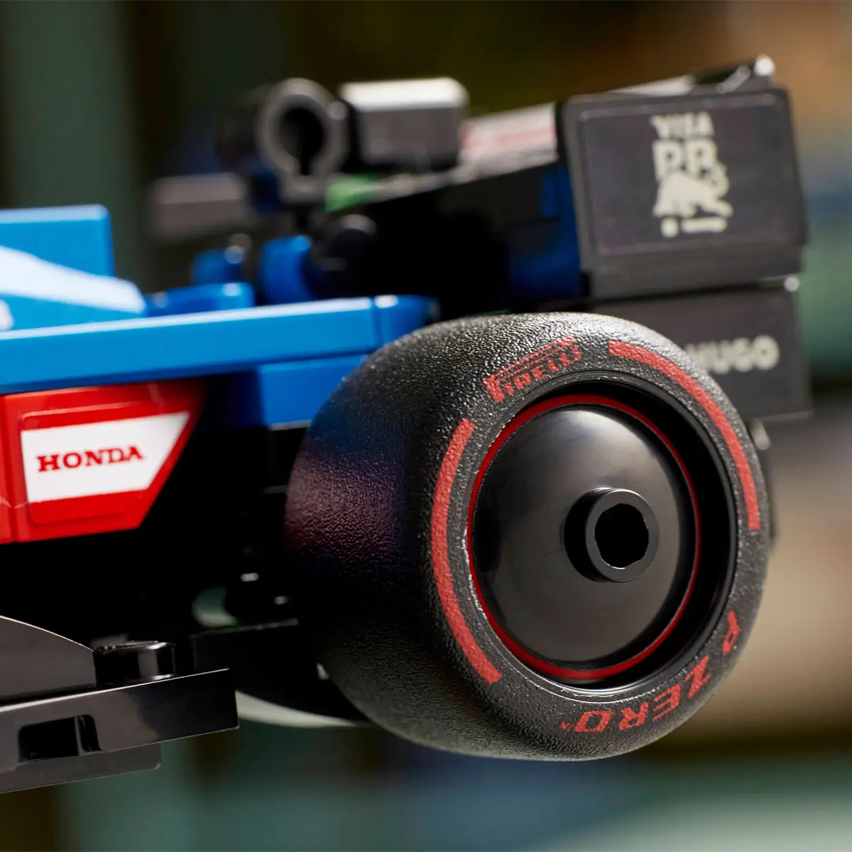Modelul de mașină F1 include un cockpit care se deschide prin ridicarea barei de protecție Halo, o aripă spate, suspensie cu braț triunghiular, stickere ale sponsorilor și anvelope spate mai late, imprimate cu numele „Pirelli”. Mașina de curse F1 include și o minifigurină pilot purtând o ținută RB și o cască, pe care o poți plasa în cockpit. Odată finalizat, modelul arată impresionant ca piesă de etalare.
