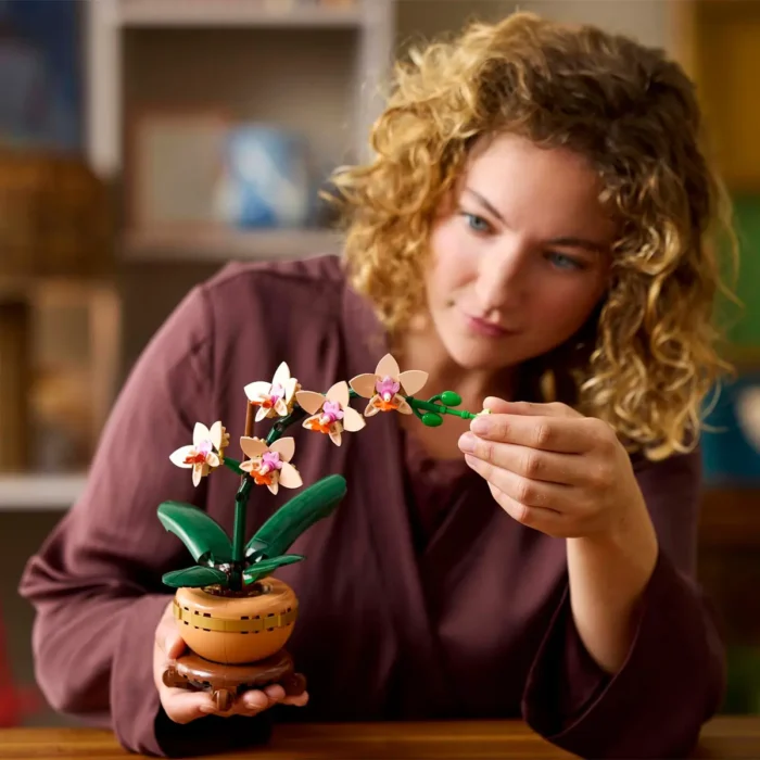Transformă orice colț de casă sau birou într-un spațiu plin de rafinament cu această Mini Orhidee LEGO® – o piesă decorativă inspirată din natură, creată pentru momente de relaxare și bucurie estetică. Cu flori în nuanțe delicate de piersică, frunze verzi și un ghiveci cu aspect de teracotă, setul oferă o experiență de construcție plăcută și un rezultat spectaculos.