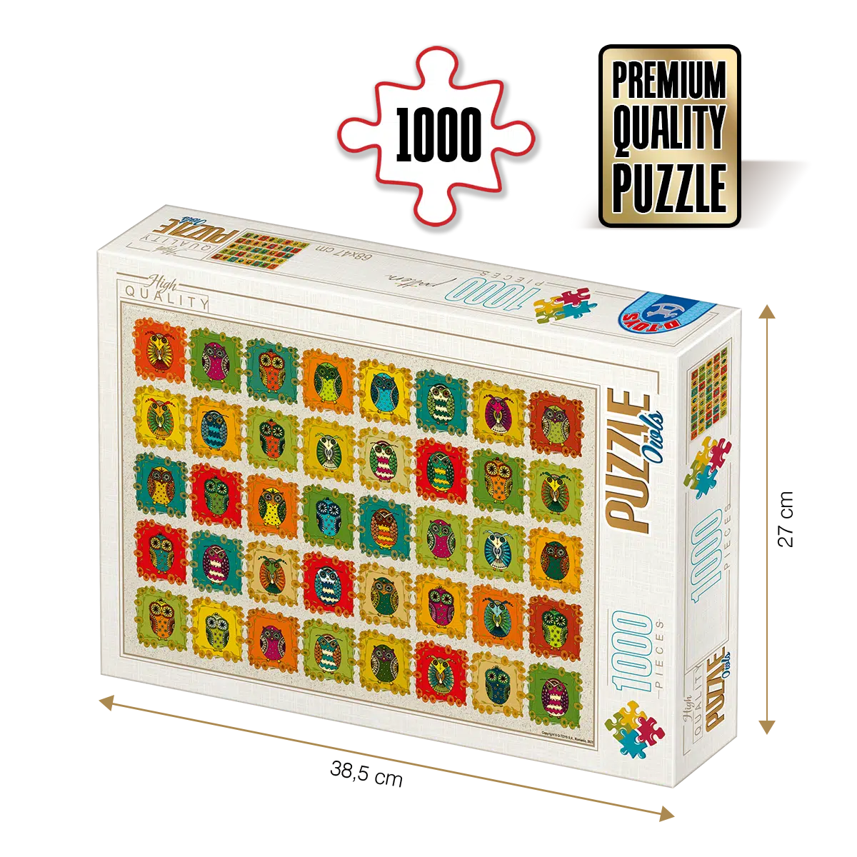 Puzzle 1000 piese – bufnițe este un joc puzzle fascinant, perfect pentru iubitorii de natură și pentru cei cărora le plac aceste animale incredibile. Artista David  Katai Eszter a conceput o multitudine de variante cu bufnițe colorate pe care le-a reunit în acest puzzle adulți minunat.