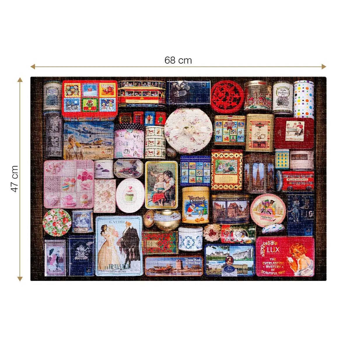 O colecție de cutii vintage pline de farmec, culori și povești din alte timpuri — într-un puzzle care combină eleganța clasică cu relaxarea autentică.