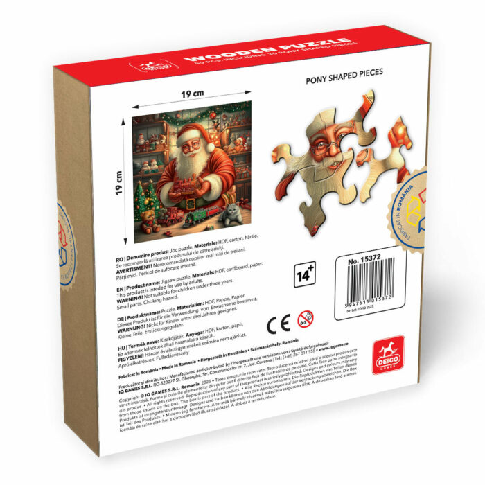 Descoperă secretele atelierului lui Moș Crăciun în timp ce asamblezi acest puzzle minunat! Piesele unice din MDF adaugă o notă de originalitate și o experiență antrenantă pentru întreaga familie.