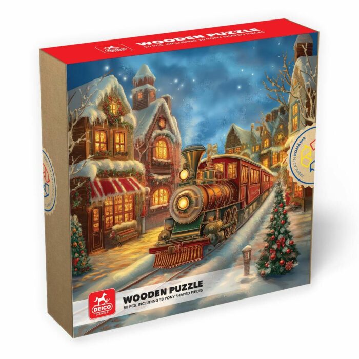 Îmbarcă-te în călătoria magică a Crăciunului cu acest puzzle inedit! Trenul lui Moș Crăciun prinde viață pe măsură ce îmbini piesele de lemn, fiecare având o formă specială. Un cadou perfect pentru iubitorii sărbătorilor de iarnă!