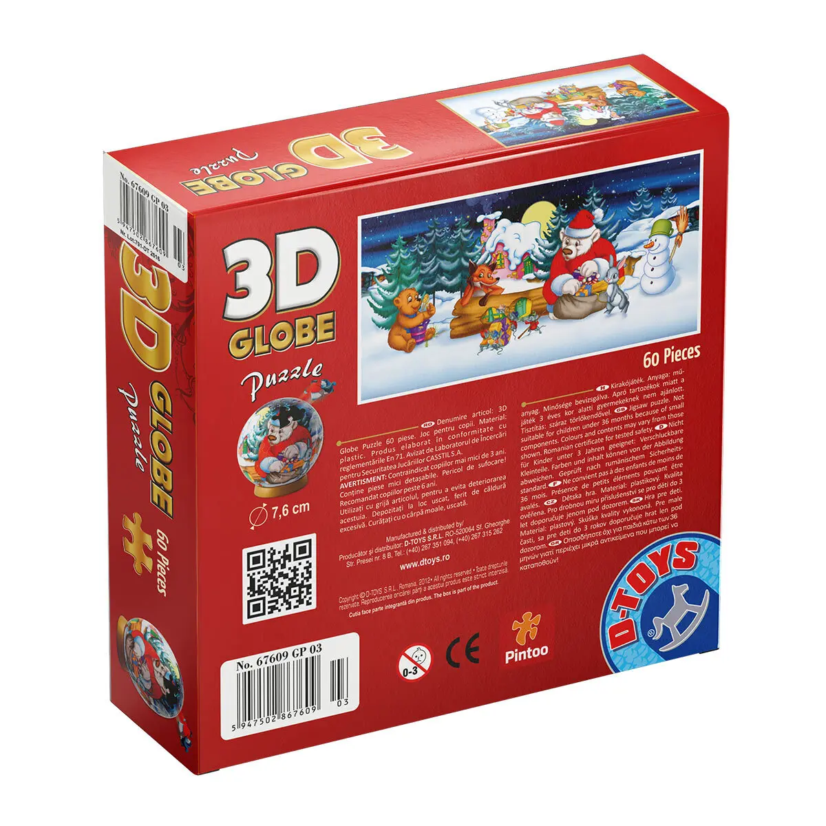 Educativ și captivant, Puzzle 3D Globe 60 de piese dezvăluie o imagine fermecată a unui peisaj de iarnă, cu personaje vesele și animate. Odată asamblate, piesele formează un glob colorat care poate fi un veritabil obiect decorativ ce le amintește copiilor puterea perseverenței și a determinării.