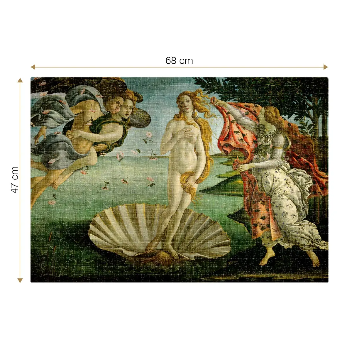 Pătrunde în universul rafinat al artei renascentiste cu acest puzzle spectaculos inspirat din celebra pictură Nașterea lui Venus de Sandro Botticelli.