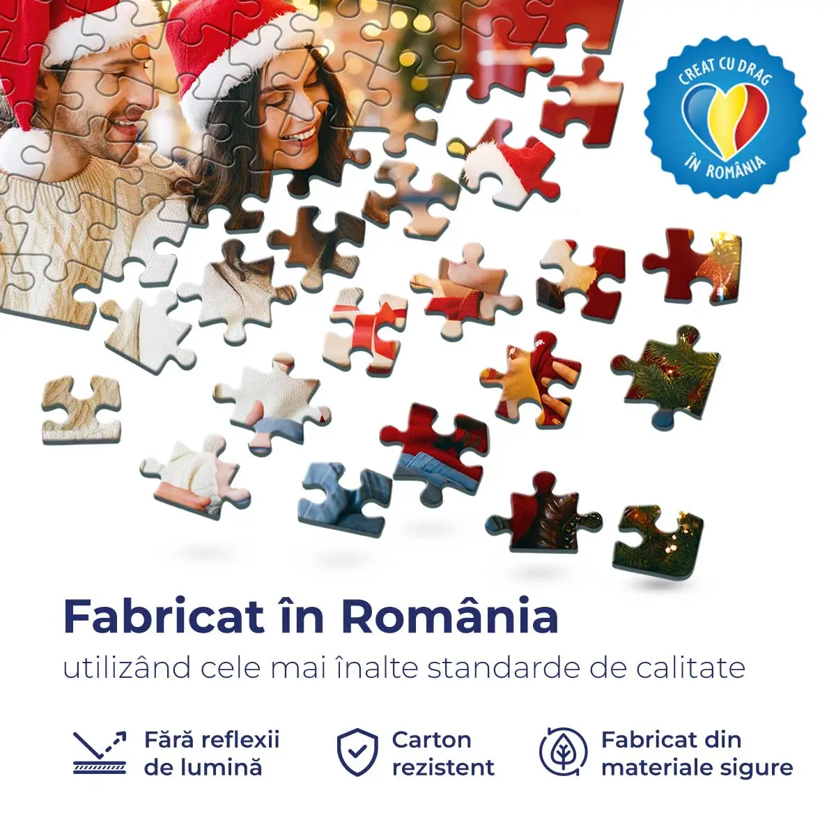 Transformă-ți momentele speciale în tablouri de colecție create din piese de puzzle! Încarcă-ți imaginea preferată pe site și comandă-ți rapid un puzzle personalizat de 100 sau 500 de piese.