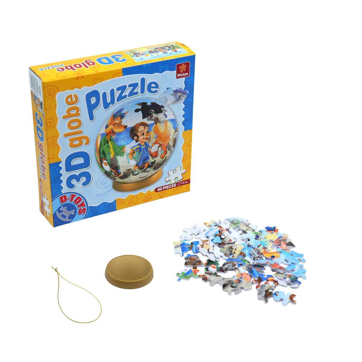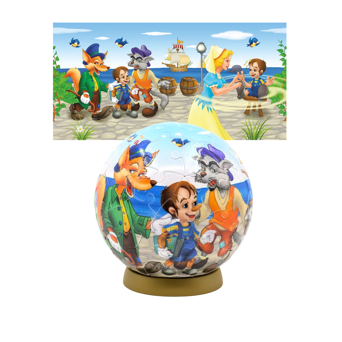 Dacă ești un adept al jocurilor de perspicacitate, acest puzzle cu 60 piese – oferind o perspectivă uimitoare – cu siguranță îți va tăia răsuflarea! Prin asamblarea pieselor curbate, vei realiza o suprafață sferică și vei descoperi o imagine tridimensională cu personaje îndrăgite din basmul Pinocchio.