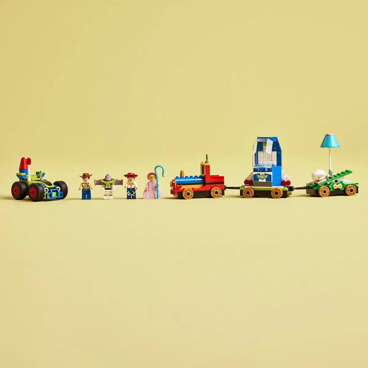 Copiii sărbătoresc 30 de ani de la lansarea filmului Disney și Pixar Povestea jucăriilor de mare succes, învățând să construiască o locomotivă în stil western, 2 vagoane alegorice și o mașină. Vagoanele alegorice includ un balansoar și o navă spațială. Setul construibil conține 4 personaje LEGO ǀ Disney și Pixar: Woody, Jessie, Bo Peep și Buzz Lightyear.